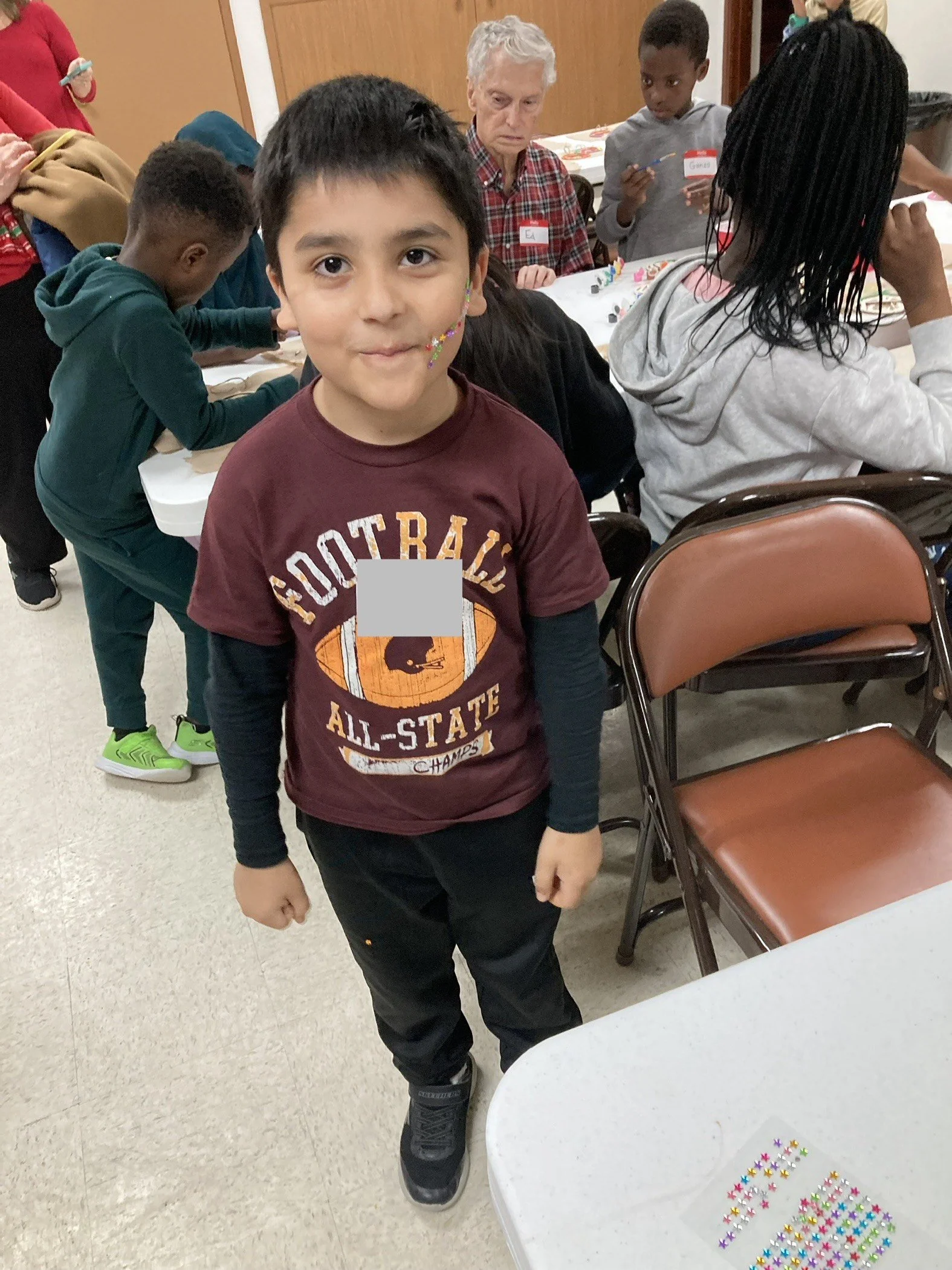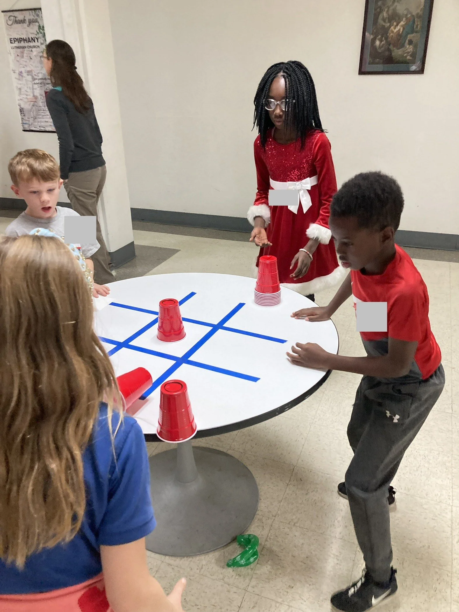 Mini jewels and markers, bows and spatula turners, bells and cups, butcher paper, and crayons are just a few of the many uniquely combined items that brought beautiful smiles and excited voices to the fellowship hall of Epiphany Lutheran Church on Tuesday, December 9.