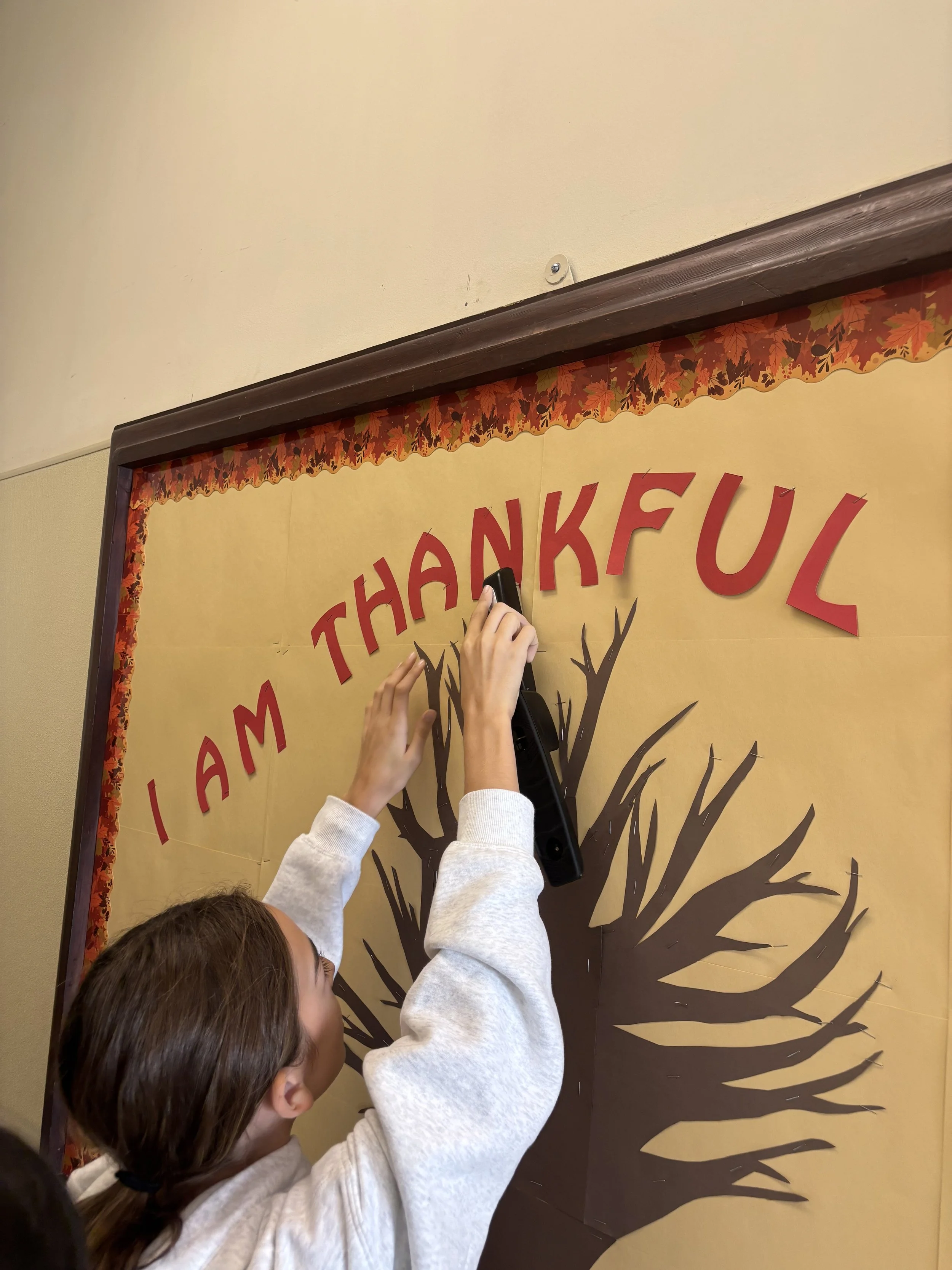 By the end of the morning, our property was cleaner on the outside and was filled with palpable joy on the inside where cheery students sat with English language learners and others worked on bulletin board decorations.